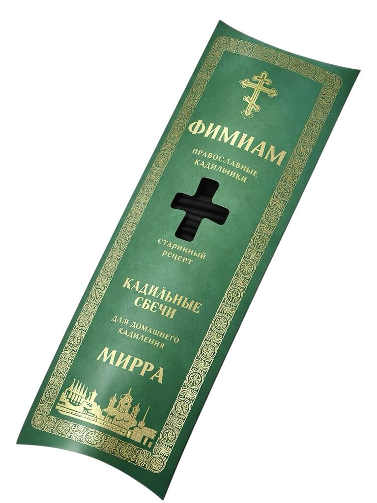 Kadidlové svíčky s vůní myrhy jsou určeny pro domácí modlitbu i chrámové použití. Jsou ručně vyráběny tradiční technologií s použitím přírodního kadidla, myrhy a rostlinných pryskyřic. Při hoření vytvářejí rovnoměrný, jemný kouř s teplou, vonnou vůní, která podporuje soustředěnou modlitbu a uklidňující atmosféru.
