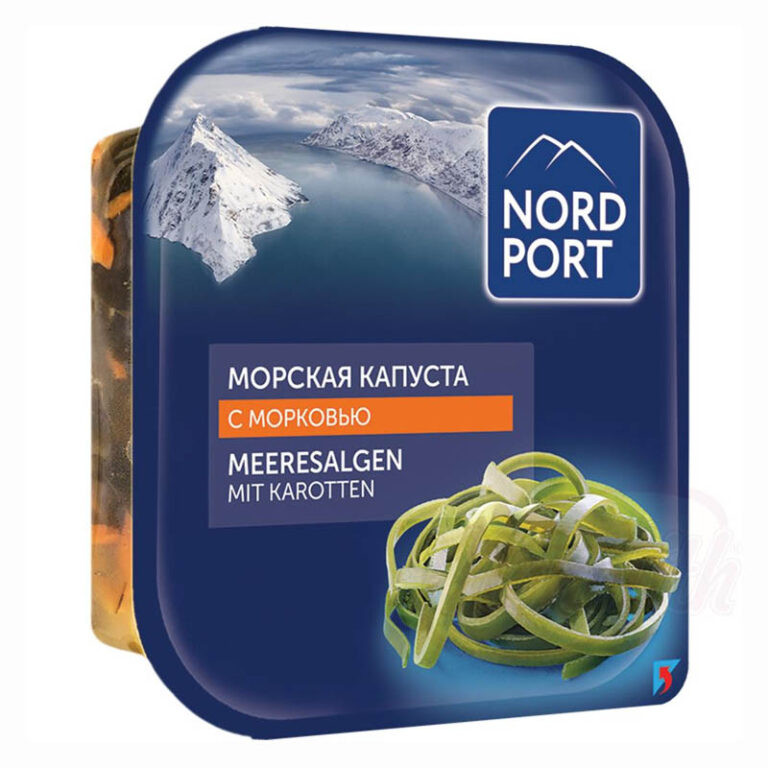 Mořská řasa s mrkví je chlazený salát připravený k okamžité konzumaci, který kombinuje prospěšné vlastnosti laminarie s jemnou chutí mrkve. Produkt se vyznačuje křupavou texturou a vyváženou sladkokyselou chutí, díky čemuž je ideální jako příloha, předkrm nebo ingredience do salátů.