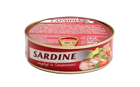Složení: sardinky (65%), rajčatová omáčka 35% (voda, rajčatová pasta, cukr, stolní sůl, česnek, chilli paprička, zahušťovadlo E1442, regulátor kyselosti E260).