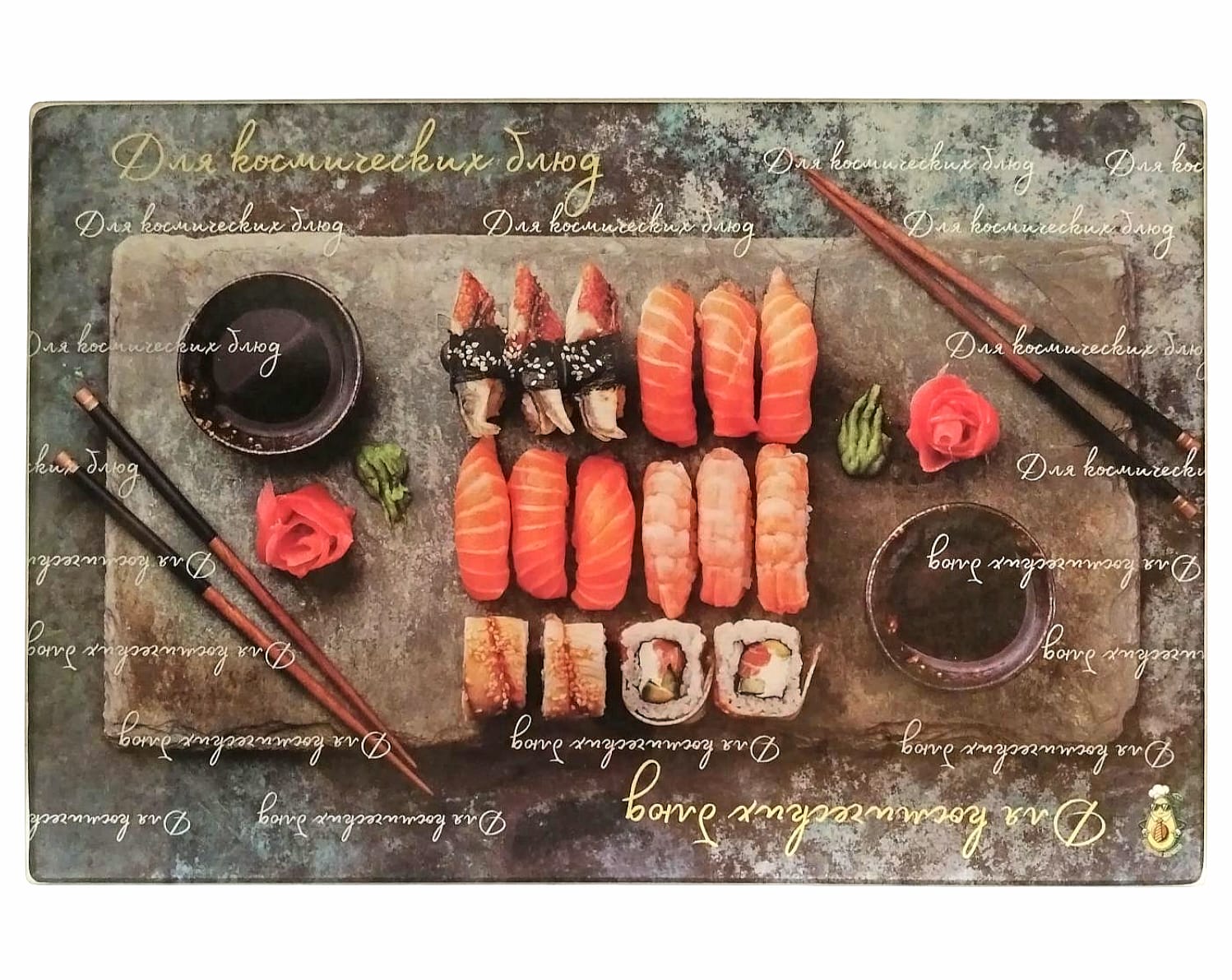 Vneste inspiraci do své kuchyně s tímto stylovým skleněným prkénkem. Nápis „Dlya kosmicheskikh blyud“ bude skvělou motivací pro vytváření neobvyklých a ohromujících kulinářských mistrovských děl.