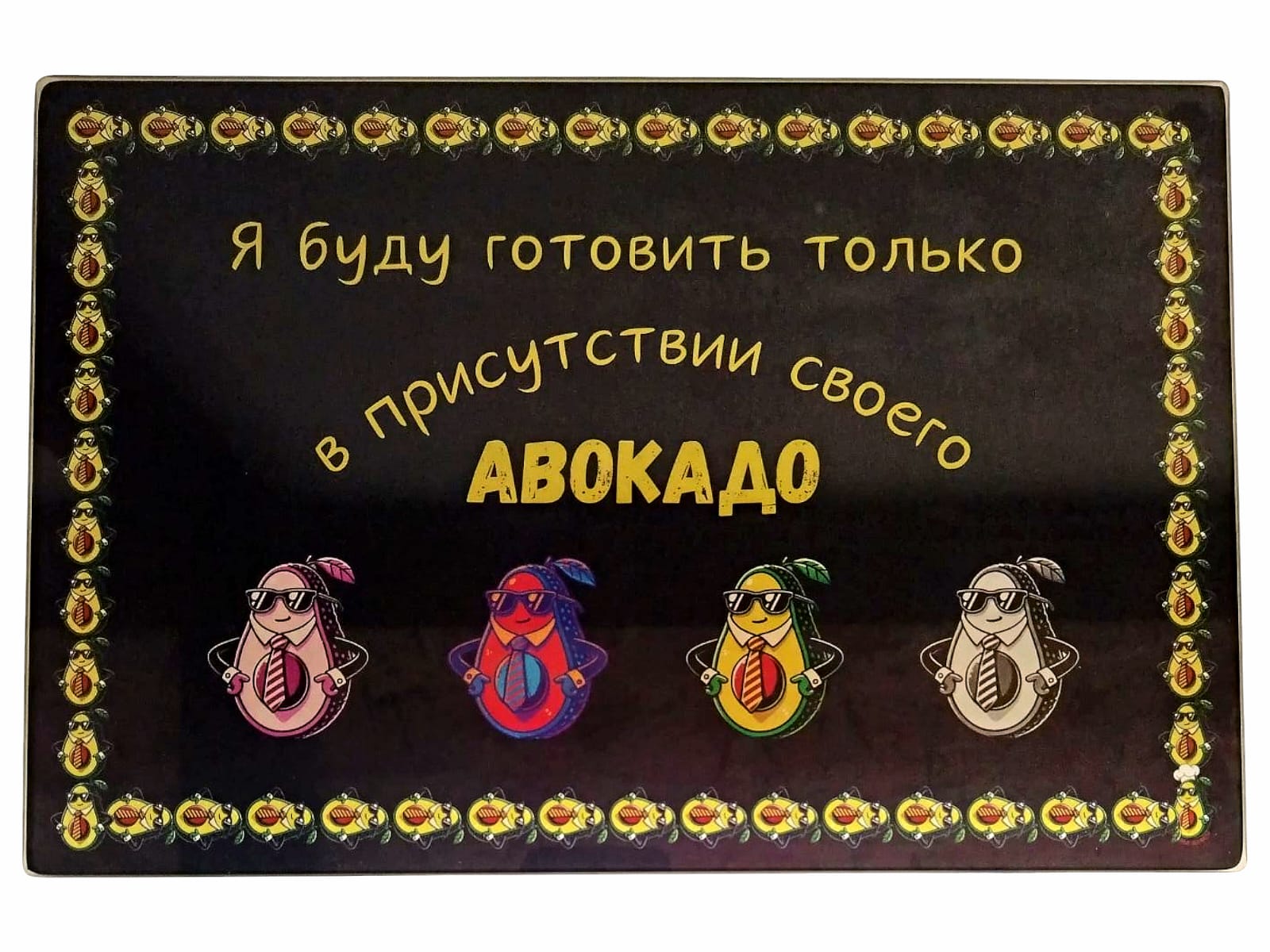 Vneste do své kuchyně lehkost a dobrou náladu s tímto originálním skleněným prkénkem. Výrazný a veselý design s nápisem „V prisutstvii svoego avokado“ dodá interiéru útulnost a stylový akcent.