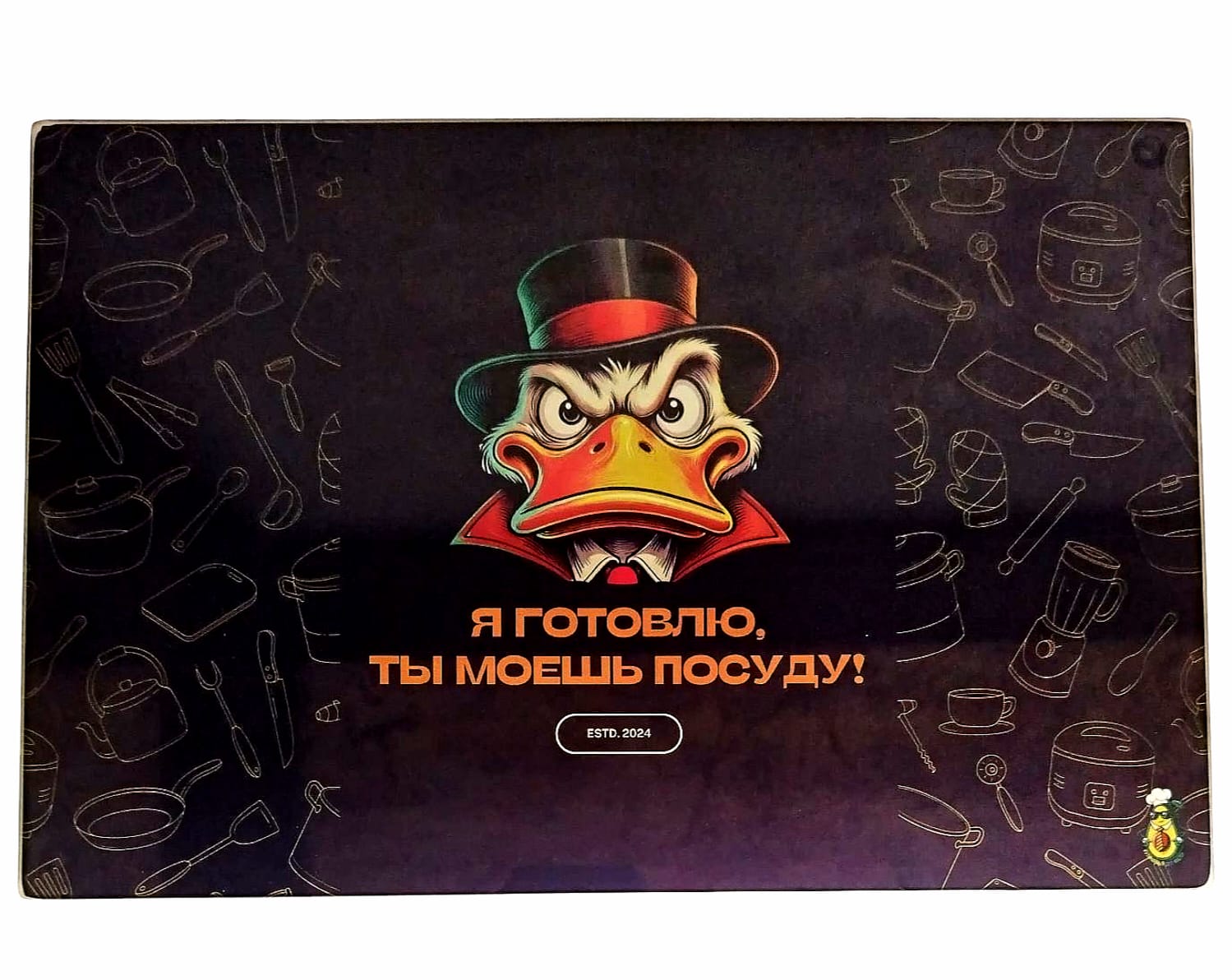Vneste do své kuchyně špetku humoru a spravedlivého rozdělení povinností. Toto stylové skleněné prkénko s nápisem „Ya gotovlyu — ty moesh posudu“ je nejen praktickým pomocníkem, ale i každodenním důvodem k úsměvu.