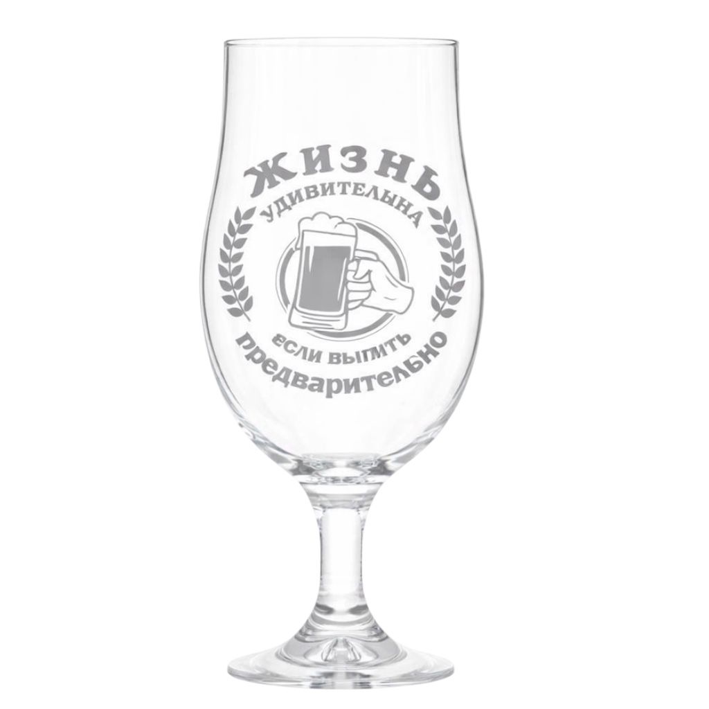 Originální pivní sklenice s humorným nápisem „Žyzn udivitelnaja jesli vypit predvaritelno“ zlepší náladu a bude skvělým dárkem pro milovníky piva a humoru. Velkorysý objem umožňuje naplno si vychutnat oblíbený nápoj, zatímco pevné sklo zajišťuje spolehlivost a dlouhou životnost. Pohodlný tvar sklenice dobře padne do ruky a zvýrazňuje chuť i aroma piva. Ideální pro domácí použití i veselé setkání s přáteli.