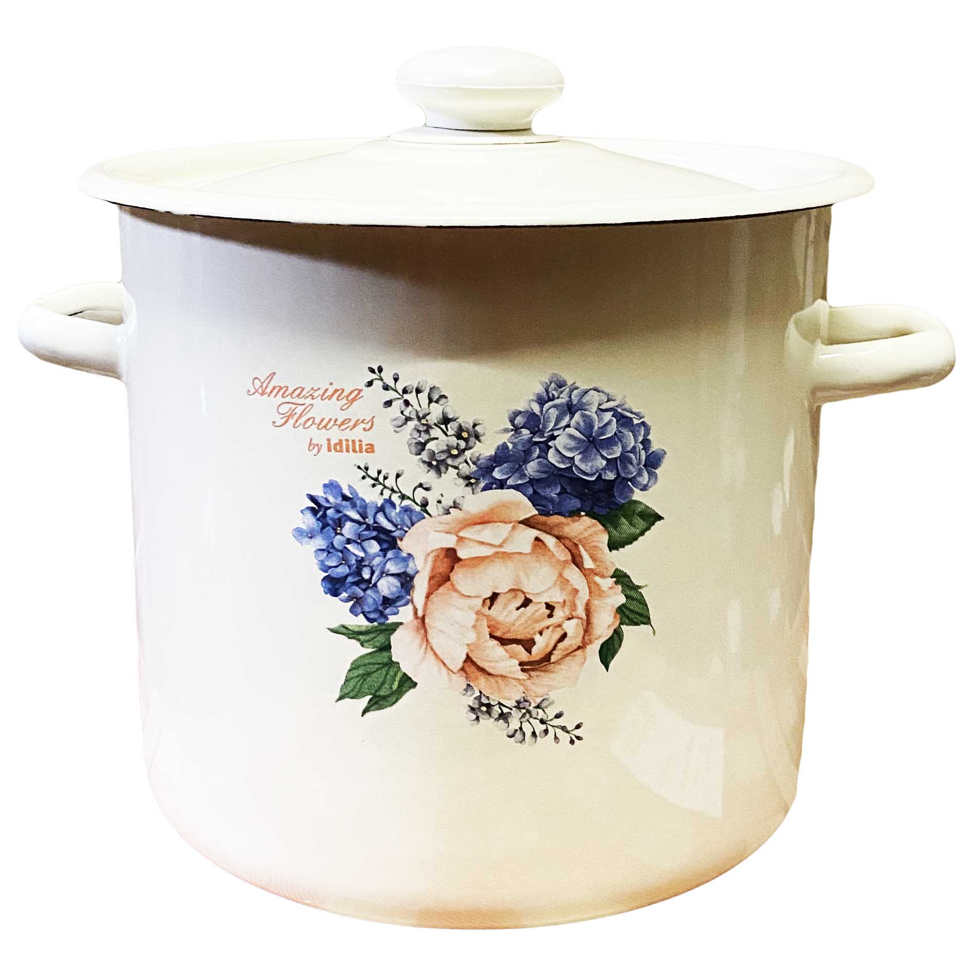 Smaltovaný kastrol 7L Pivoňka a šeřík