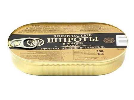Složení: Uzené šproty 70%, rapsol 30%, jedlá sůl.