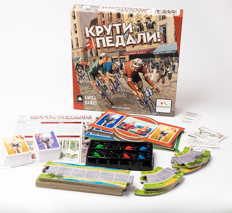 Herní set obsahuje: 4 desky hráčů, 8 figurek cyklistů, 21 díl tratě, 187 karet, brožura s pravidly.