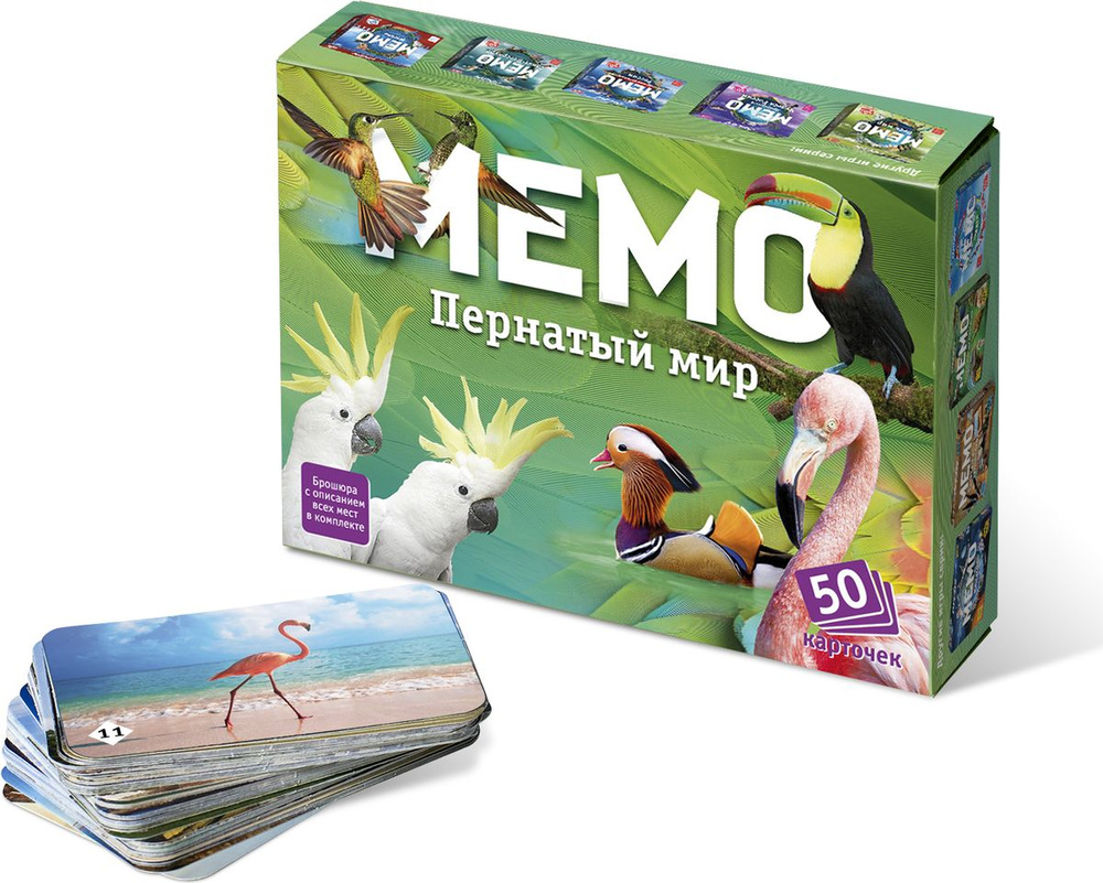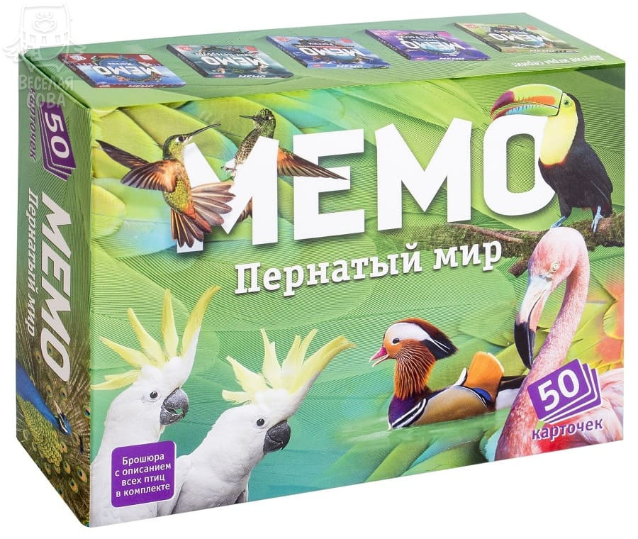 Stolní hra "Memo: Pernatý svět" (od 5 let) je skutečně zajímavá a úžasně prospěšná! S lehkostí zvedne náladu velké i malé skupině. Staňte se příznivcem této hry, zahrajete-li si ji jen jednou. Jedna z těch vzácných her, kde úspěch častěji závisí na schopnostech a úsilí hráče než na štěstí. Užitečná hra s jednoduchými pravidly, kde děti mohou vyhrát bez "podbízení" dospělým!
