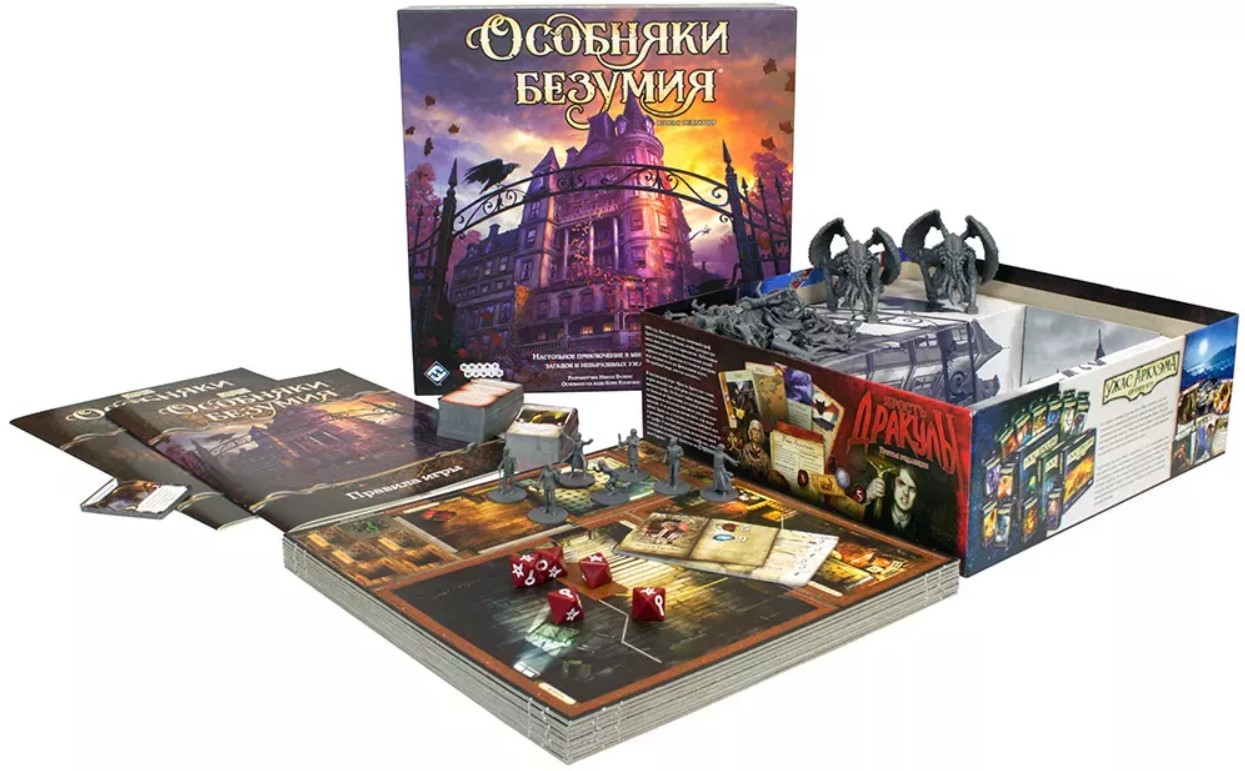 "Osobnjaki bezumija" je plně kooperativní desková hra o dobrodružstvích v univerzu hrůzy H. P. Lovecrafta. Hráči přebírají role vyšetřovatelů a vydávají se do temných prostor zatracených sídel v Arkhamu, na mrazivé přístavy Innsmouthu a do dalších děsivých míst, aby odhalili jejich neobvyklá tajemství, vyřešili složité hlavolamy a střetli se s bytostmi z jiných světů.
