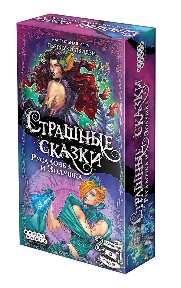 Stolní hra "Strašnye skazki.Rusaločka i Zoluška" (od 13 let) je sada dvou plnohodnotných doplňků k základní hře. Přidáním těchto karet k hlavní sadě si můžete výrazně rozšířit své možnosti a variabilitu pohádkového vyprávění. Tím se zvýší doba trvání hry, ale při přání můžete snížit celkový počet karet, abyste nezdržovali partie. Sada nabízí mnoho nových karet postav, dějových karet, předmětových karet a objevují se nové mechanismy s oddělenými balíčky. Doplněk "Malá mořská víla a Popelka" přidává k hlavní verzi hry nové atraktivní hrdinky. Malá mořská víla samozřejmě sní o tom, že místo rybího ocasu dostane lidské nohy a získá srdce krásného prince. K tomu je zapotřebí uzavřít dohodu s mořskou čarodějkou, ale zda to půjde hladce, nikdo neví. Popelka sní o bále v královském paláci a následném setkání s princem, ale nelze zapomínat na zlé sestry a zlou nevlastní matku.
