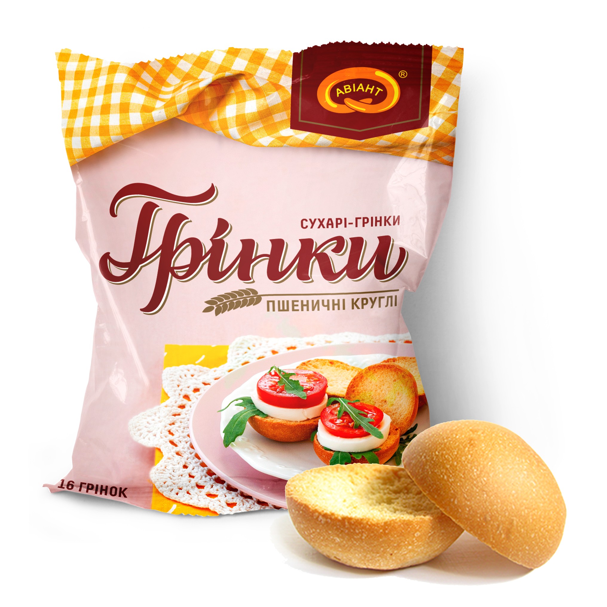 Křupavé oválné suchary-krutonky značky Aviant jsou ideální svačinou k pivu, polévce nebo jen tak na každý den. Vyrobeny z kvalitního chleba, dozlatova opečené a dochucené aromatickým kořením. Díky praktickému balení o hmotnosti 70 gramů jsou ideální na cesty nebo piknik.