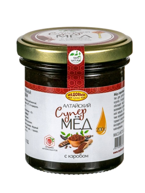 Med s karobem je zdravou pochoutkou pro děti i dospělé. Karobový prášek (karob) obohacuje med o cennou vlákninu a další přírodní výhody. Pomáhá předcházet vzniku a rozvoji nachlazení a virových onemocnění. Dobře se kombinuje s ovocem, pečivem a ořechy.
