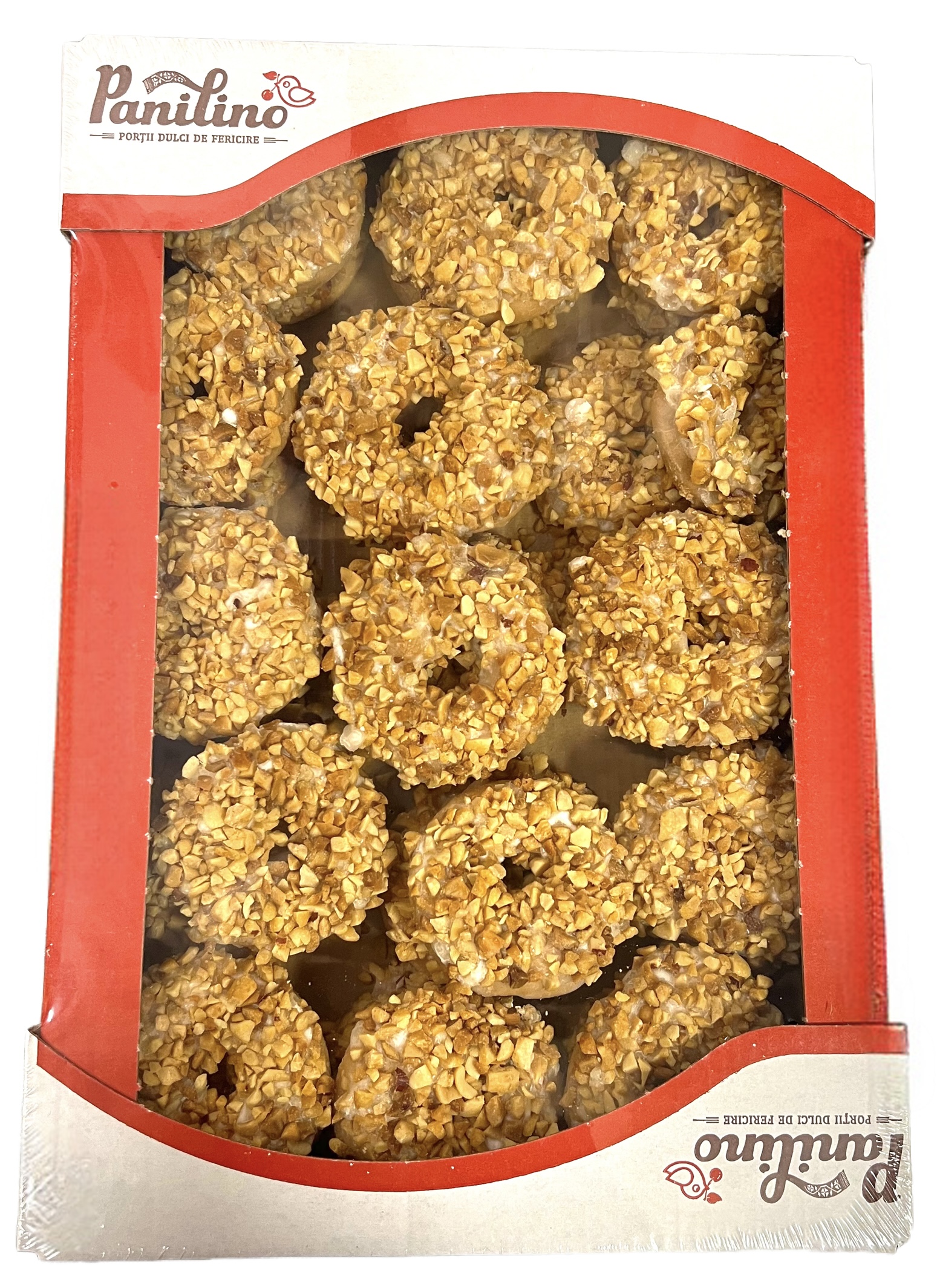 Složení: moučkový cukr, pšeničná mouka, arašídy, 80% rostlinný tuk (oleje a rostlinné tuky: palmový olej, řepkový olej, částečně hydrogenovaný palmový olej, voda, emulgátory (mono- a diglyceridy mastných kyselin), regulátor kyselosti: kyselina citronová, aroma, barvivo: karoteny), cukr, vanilkové aroma.