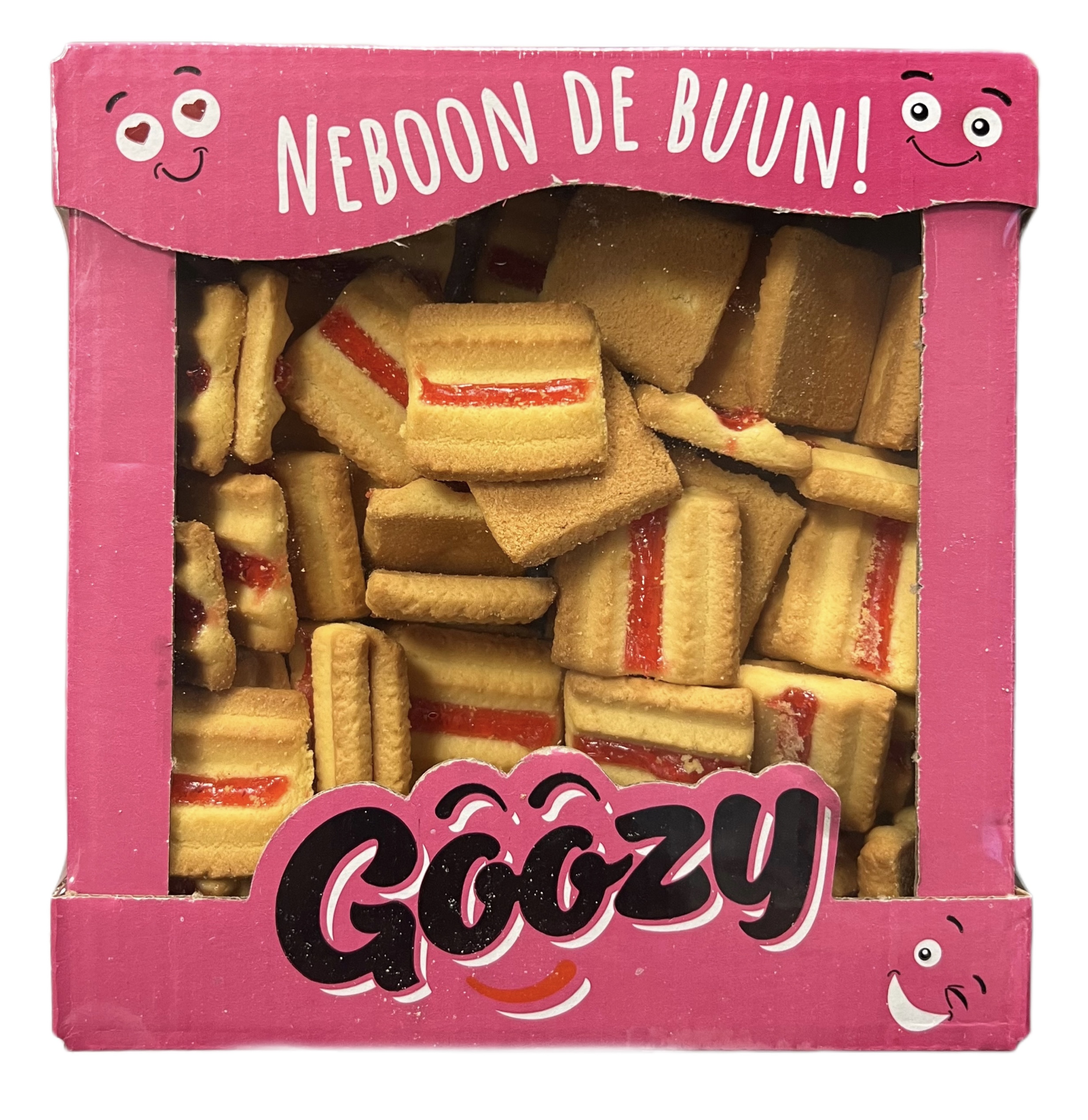 Složení: pšeničná mouka, rostlinný margarín 80 % (rostlinné oleje: palmový, slunečnicový, řepkový v různém poměru, voda, emulgátor: mono- a diglyceridy mastných kyselin, sůl 0,2 %, konzervant kyselina sorbová (E200), aroma, acidifikátor: kyselina citronová (E330)), teple stálá náplň meruňkové příchuti (cukr, jablkový protlak, melasa, voda, modifikovaný škrob, kyselina citronová (E330), sorbát draselný (E202), barvivo: annatto, příchuť identická s přírodní jahodou), invertovaný sirup, cukr, jedlá sůl, tropická směs aroma, tartrazin.
