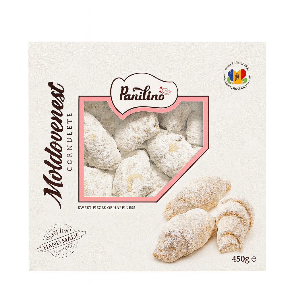 Sušenky Moldovenesti od Panilino jsou tradiční moldavskou pochoutkou s příjemnou, plnou chutí a vůní domácího pečiva. Každá sušenka má měkkou, lehce drobivou strukturu a sladkou klasickou chuť, díky které je ideálním doplňkem k čaji, kávě nebo mléku.
