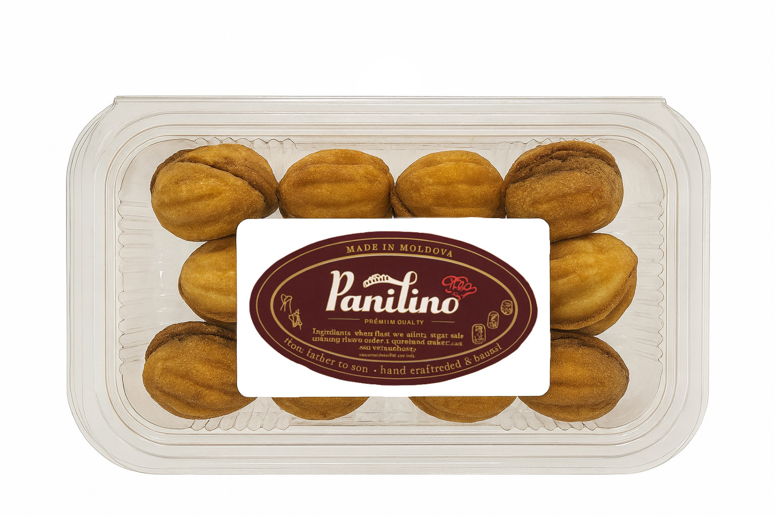 Sušenky „Ořechy“ Panilino jsou voňavé a křupavé pískové skořápky ve tvaru tradičního ořechu. Jemná máslová chuť a lehká struktura z nich dělají ideální základ pro domácí dezerty. Sušenky lze podávat samostatně nebo plnit oblíbenými krémy, vařeným kondenzovaným mlékem či ořechovými náplněmi. Praktické balení 250 g je vhodné pro rodinné stolování i slavnostní příležitosti.