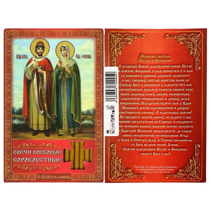Svíčky Sorokoustné Petr a Fevronie 16 cm 40 ks