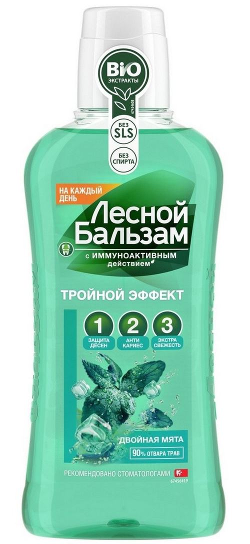 Preventivní ústní voda Lesní balzám Vám dodá pocit svěžího dechu po dlouhou dobu a poskytne maximální ochranu před zápachem po celý den. Čistí až 100% ústní dutiny, neutralizuje působení patogenních bakterií v dutině ústní a výrazně snižuje rychlost tvorby plaků. Posiluje dásně díky patentovanému bylinnému odvaru (90% bylinný odvar), vylepšenému šťávou z aloe a výtažkem z listů černého rybízu. Chrání před kazem a posiluje sklovinu díky minerálnímu komplexu s fluoridem. Poskytuje dlouhotrvající svěžest a chrání před špatným dechem díky vylepšenému složení s přírodní mátou.