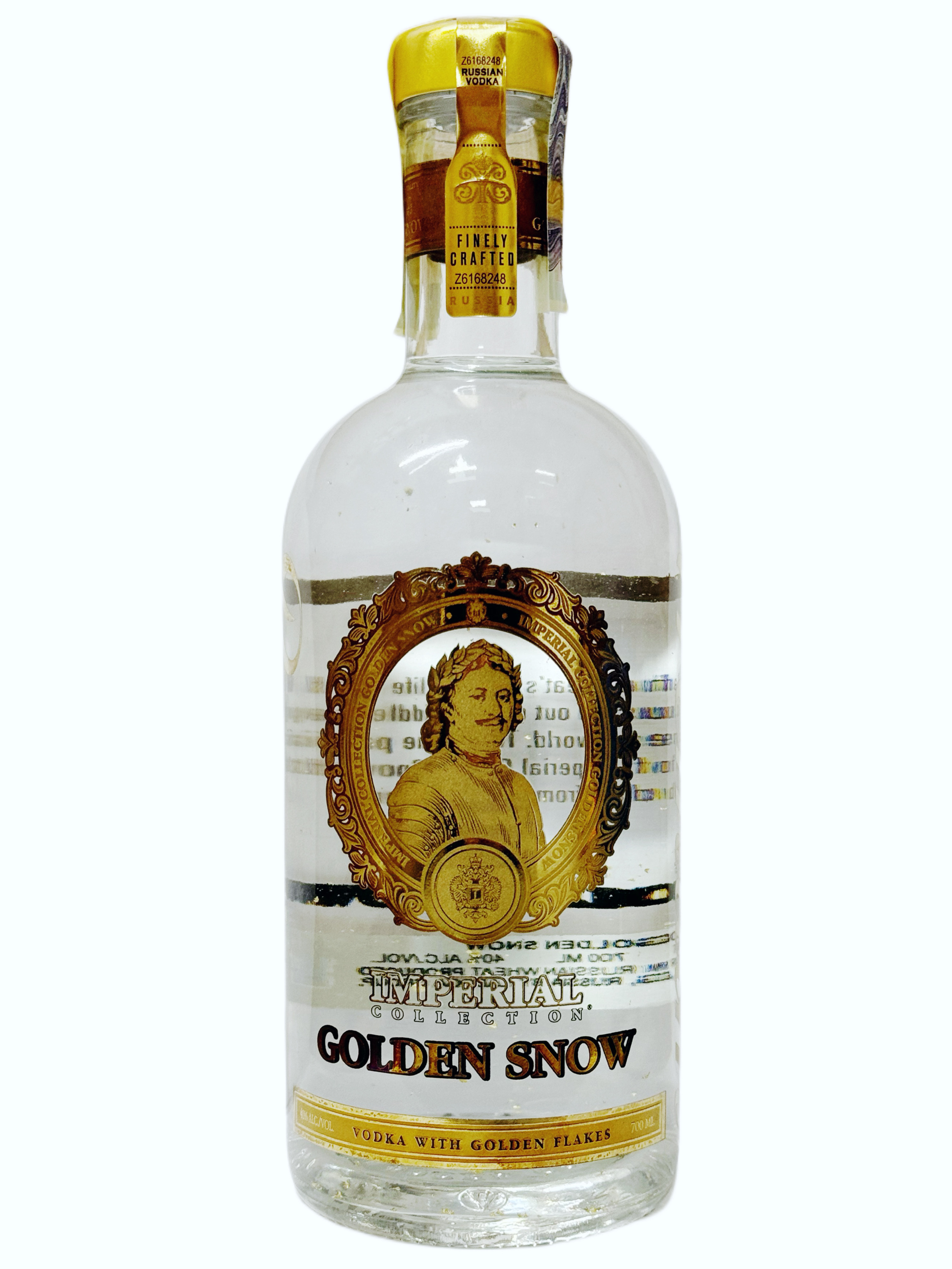 Imperiální kolekce, Golden Snow - unikátní vodka vytvořená z vysoce kvalitního lihu "lux" s přídavkem vloček pravého zlata v 23 karátech. Při míchání tyto vločky pomalu krouží, vytvářející efekt jemně padajícího sněhu. Při výrobě vodky "Imperiální Kolekce" Zlatý Sníh se používá jedinečná receptura, obnovená z archivů doby Petra Velikého. Používá se speciálně čištěná voda z jezera Ladožského. Moderní technologie umožňují zlepšit organoleptické vlastnosti vody a zároveň zachovat její přirozenou sílu. Vodku vyrábíme na základě lihu třídy "lux", který je získáván z nejlepších druhů tvrdých pšenic. Další odstíny chuti vodce dodává nálev lípkového květu a lípkový med. Systém čištění vodky zahrnuje 12 stupňů a navíc prochází filtrem prošívaným zlatými nitěmi, čímž se obohacuje ionty 24-karátového zlata a má lehký omlazující účinek.