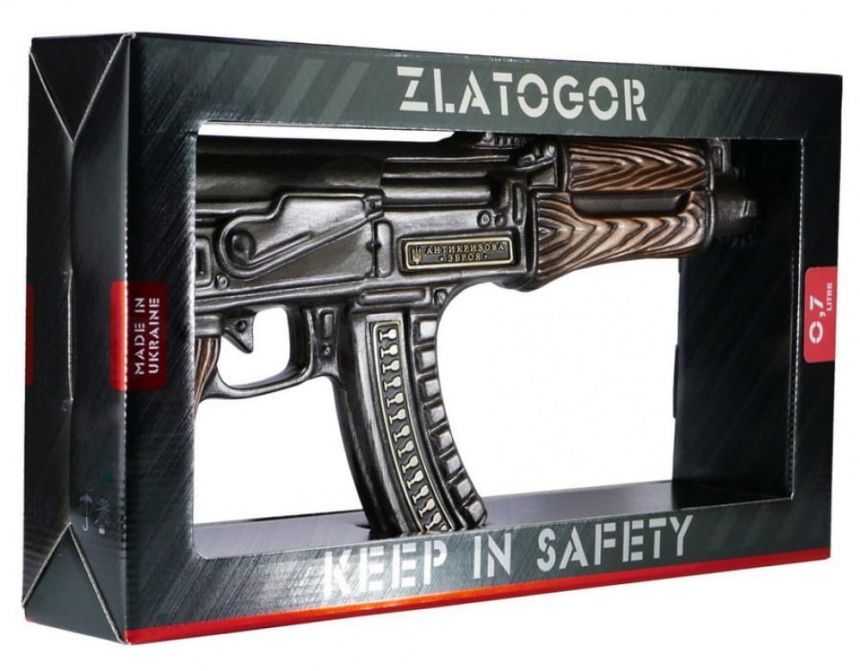 Limitovaná edice ukrajinskej vodky Zlatogor, která je naplněna do láhve s podobou útočné pušky AK-47. Vyrábí se z těch nejkvalitnějších surovin a podle nejnovějších technologií na základě receptury odborníků z Kyjevské botanické zahrady. Při výrobě se používá nejčistší artéská voda z hloubky 195 metrů.
