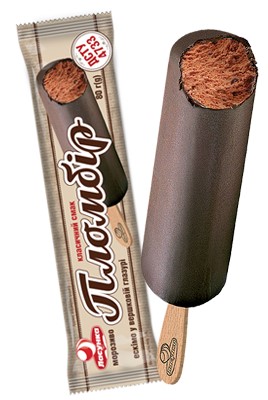 Složení: zmrzlina (plnotučné kravské mléko, máslo, cukr, kakaový prášek, voda, sušené odstředěné mléko, stabilizátor do zmrzliny (emulgátor: mono- a diglyceridy mastných kyselin; stabilizátory: karubová guma, guarová guma, škrob 8%) ), smetanová poleva 25% (máslo, cukr, kakaový prášek, emulgátor sójový lecitin, aroma vanilin).