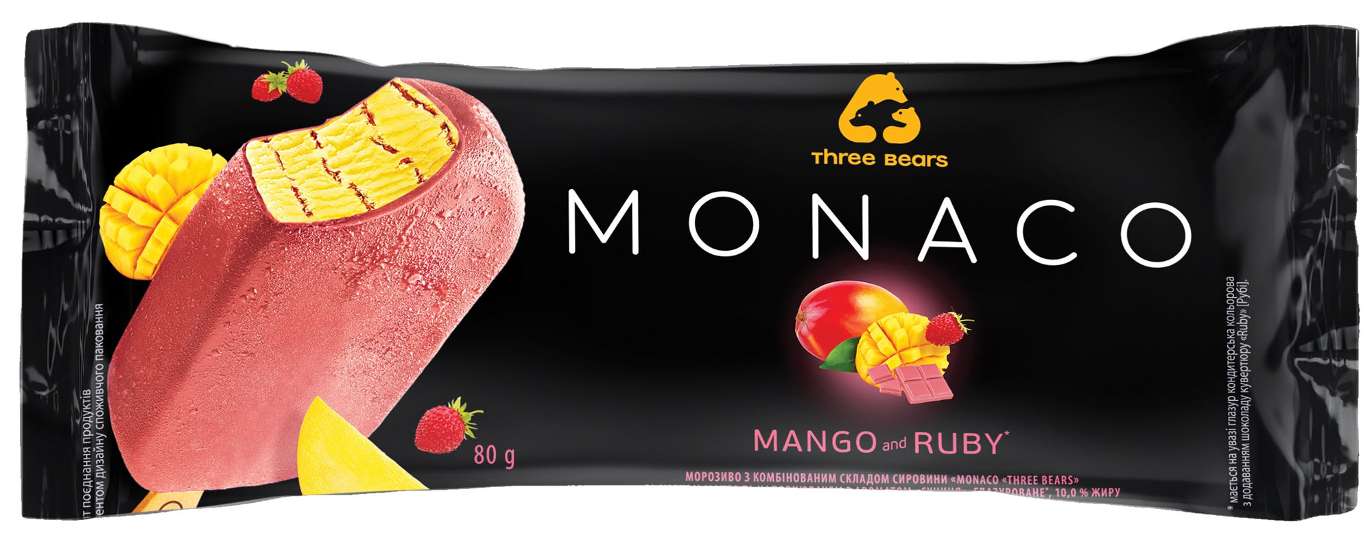 Složení: Zmrzlina 73,8% (odstředěné mléko, cukr, rostlinné oleje: částečně ztužený palmový olej, slunečnicový olej, v různém poměru; voda, sušené odstředěné mléko, glukózový sirup, emulgátor: mono- a diglyceridy mastných kyselin, stabilizátory: svatojánský chléb, guarová guma, acidifikátor: kyselina citronová, aroma mango 0,2 %, sušené mango 0,16%, barvivo: beta-karoten); tuková poleva 20% (rostlinný olej: kokosový olej, cukr, sušené odstředěné mléko, syrovátkový výrobek, kakaová hmota 0,1% (cukr, kakaové máslo, sušené odstředěné mléko, sušené plnotučné mléko, kakaová hmota, emulgátor: sójový lecitin, regulátor kyselosti: kyselina citronová, příchuť vanilka), koncentrát z červené řepy, koncentrát z mrkve, emulgátor: sójový lecitin, regulátor kyselosti: kyselina mléčná, aroma vanilka, sůl, aroma lesních plodů, barvivo: kurkumin); ovocná náplň s příchutí lesních jahod 6,2% (cukr, jablečné pyré, voda, modifikovaný kukuřičný škrob, sladký bramborový koncentrát, koncentrát šťávy z černé mrkve, regulátory kyselosti: kyselina citronová, citrát sodný; příchuť lesní jahody, příchuť lesní jahody, lesní jahody, sušené 0,1%, konzervační látka: sorban draselný).
