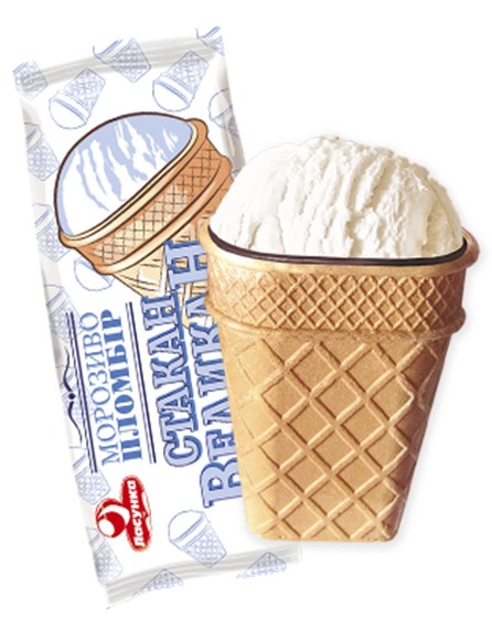 Plombir, připravený s domácím mlékem a máslem. Křupavý vaflový pohár a krémová chuť náplně - perfektní kombinace.