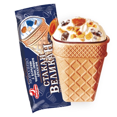 Složení: Zmrzlina 71,2 % (sušené odstředěné mléko, sušené plnotučné mléko, cukr, kokosový olej, emulgátor: mono- a diglyceridy mastných kyselin, stabilizátory: karubová guma, guarová guma; bramborový škrob, aroma: vanilin); poleva na kakaové bázi 11,1 % (rostlinný olej: kokosový olej, cukr, kakaový prášek, emulgátor: sójový lecitin); vaflový kornout 7,8 % (pšeničná mouka, voda, bramborový škrob, cukr, rostlinný olej: kokosový olej, emulgátor: sójový lecitin, kakaový prášek, sušená celá vejce, jedlá sůl, kypřící látka: uhličitan sodný), sušené meruňky 3,3 %, sušené švestky 3,3 %, arašídy 3,3 %.